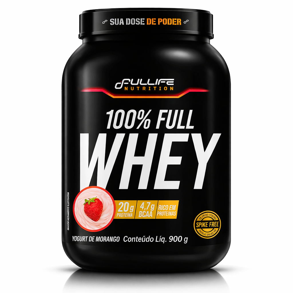 100% Full Whey Fullife Nutrition é um suplemento à base de Whey Protein Concentrado (WPC) e oferece exclusivos e deliciosos sabores gourmet. Este produto foi desenvolvido para complementar as necessidades proteicas de atletas e praticantes de atividades físicas, ajudando na recuperação muscular após os treinos, além de outros benefícios. Imagem ilustrativa.