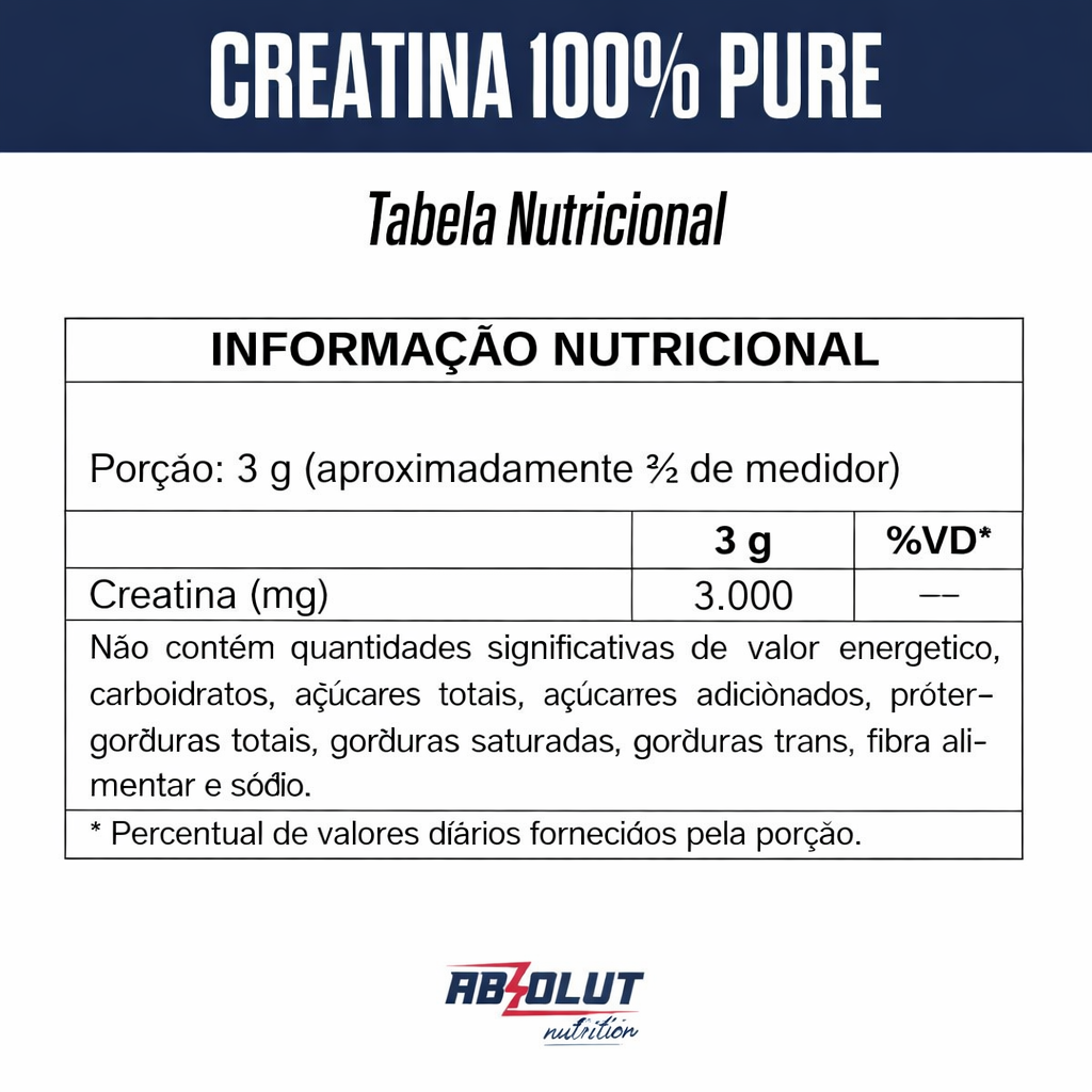 consumidores. Todas essas qualidades garantem a Creatina 100% da Absolut Nutrition, a