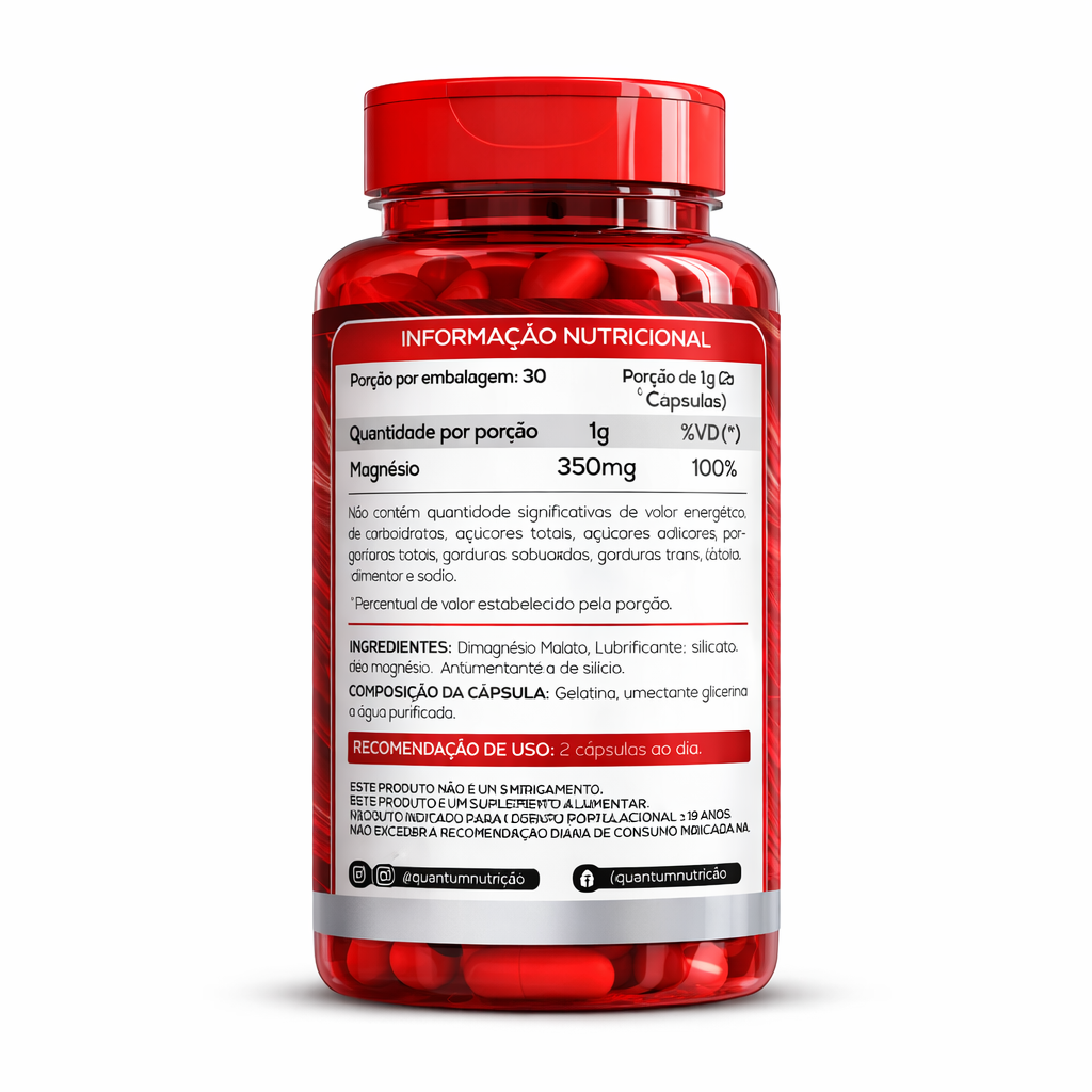 Magnésio Dimalato da Quantum Nutrition é um suplemento essencial que combina magnésio com ácido málico para oferecer absorção eficiente e mínimo desconforto gástrico. O magnésio é um mineral vital, presente em mais de 400 funções no corpo, e o dimagnésio malato garante que você aproveite todos os seus benefícios de forma segura e eficaz.