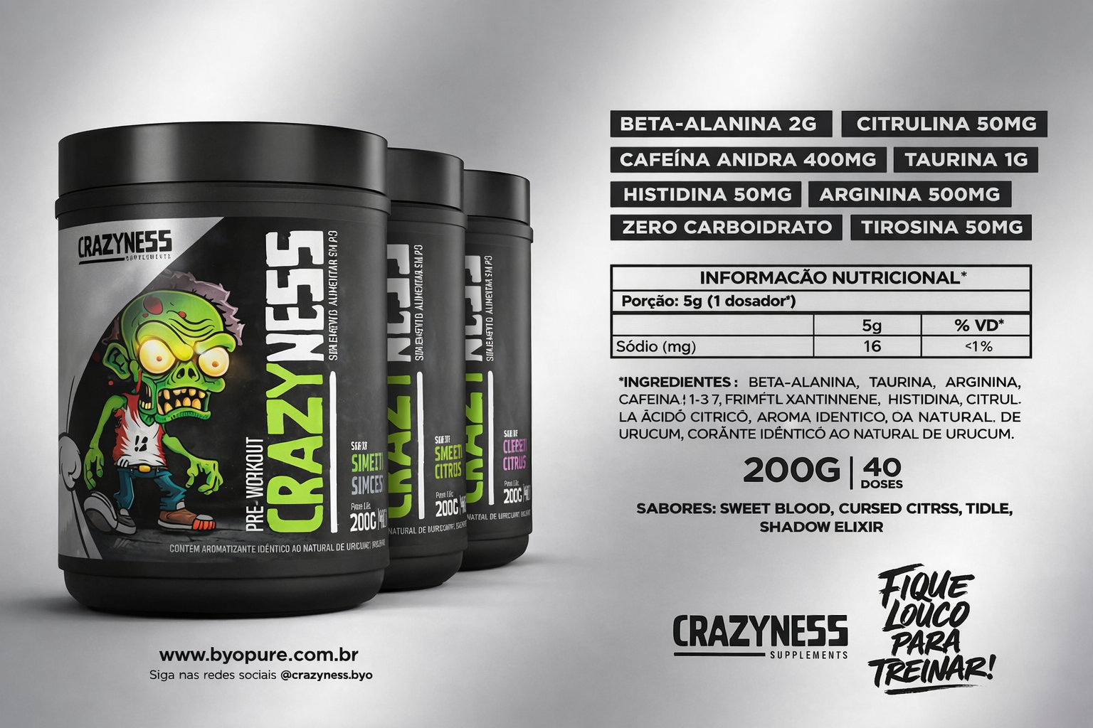 Liberte toda a sua energia com o CRAZYNESS, o pré-treino que vai transformar seus treinos em verdadeiras sessões de poder e foco!