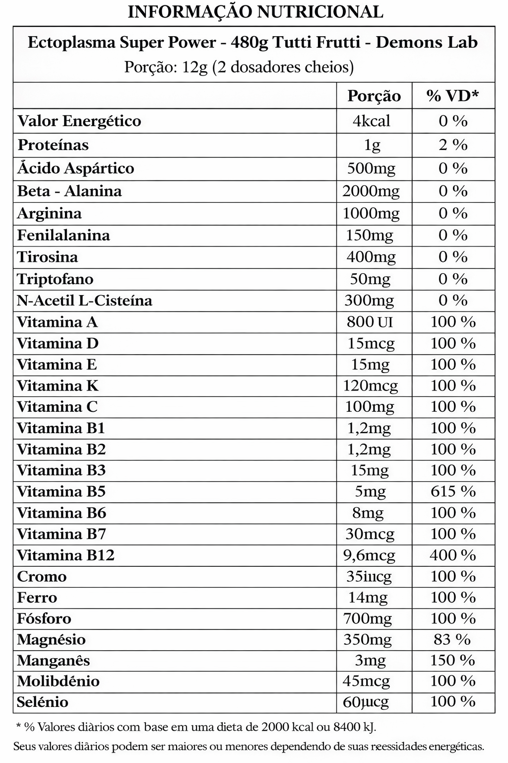 Se você está em busca de alcançar níveis extraordinários de foco, força e um pump vascular inigualável, o Pré-Treino ECTOPLASMA da Demons Lab é a escolha perfeita. Desenvolvido com uma fórmula inovadora, este suplemento é projetado para elevar o desempenho dos atletas mais exigentes, proporcionando uma experiência de treino insana.